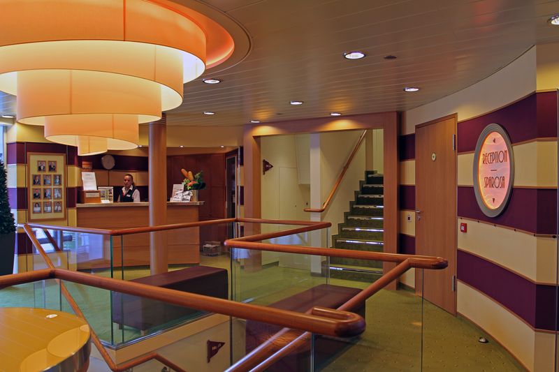 Ebenfalls im Foyer zu finden sind natürlich die rund um die Uhr besetzte Rezeption sowie auch die Bordshops. Im SPA-ROSA kann man sich verwöhnen lassen und entspannen. Neben Fitnessgeräten gibt es auch Massagekabinen, ein Sanarium und gemütliche Ruhebereiche.