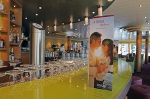 Das Herz des Schiffes ist, wie auf den meisten neuen Flussschiffen, das Foyer. Nun erschlängt dieses im ersten Moment nicht mit pompöser, Licht durchfluteter Größe wie man vielleicht erwarten mag und von Mitbewerbern kennt, sondern punktet vielmehr durch eine intelligente Aufteilung eines Treppensystems welches zu allen Deck- und Schiffbereichen führt. Die Kabinendecks sind von hier ebenso zu erreichen wie der Restaurantbereich und das riesige SPA-ROSA. Etwas verwundert hat es mich, dass ein behindertengerechtes, öffentliches WC vorhanden ist. Verwundert deshalb, weil es keinen Fahrstuhl gibt und das Schiff auch sonst für Rollstuhlfahrer völlig ungeeignet ist. Dies ist natürlich auch nicht die Zielgruppe. Man richtet sich eher an ein jung gebliebenes Publikum der Best Ager, was auch am großen Sportangebot deutlich wird. In jeder Stadt können Fahrräder ausgeliehen werden und je nach Destination werden sogar Rafting-Touren angeboten.