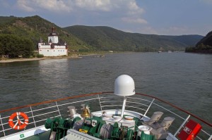 Eines der letzten Highlights war die Passage der Stadt Kaub, welche seit 2002 ebenfalls zum UNESCO-Welterbe Oberes Mittelrheintal gehört. Inmitten des Rheins thront hier auf einer kleinen Insel zum Greifen nah die stolze Burg Pfalzgrafenstein. Pfalzgrafenstein gehört neben der Marksburg und der Burg Boppard zu den wenigen nie zerstörten Burgen im Oberen Mittelrheintal. Natürlich ist dies nicht die einzige Burg, die man auf dieser Reise sehen konnte. Das gesamte Obere Mittelrheintal zwischen Koblenz und Bingen ist UNESCO Weltkulturerbe und alleine auf diesem Abschnitt reihen sich über 20 Burgen und Schlösser aneinander. Darunter Burg Stahleck, Schloss Stolzenfels, Burg Sooneck, Burg Rheinstein, Marksburg, Burg Katz, Burg Maus und Burg Gutenfels. 3.000 Jahre Geschichte liegen hier auf wenigen Kilometern nebeneinander und schaffen eine unglaubliche Masse an Gesprächsstoff während einer solchen Flusskreuzfahrt.