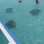 Grand Cayman begrüßt uns mit bedecktem Himmel. Da der Hafen nicht dafür geeignet ist, tendern wir an Land. Von dort geht es mit dem Bus ein Stück weiter. Wir steigen auf Boote und fahren zum Schnorcheln. Besonderes Higlight dieser Tour ist die Begegnung mit den Rochen. Angefüttert von den Guides wimmelt es bald nur so von diesen großen eleganten Meeresbewohnern. Die Ermahnung zuvor, sich den Tieren ja nur von vorne zu nähern, wird schwierig einzuhalten, so viele schwimmen um uns herum. Aber es ging alles gut, wir konnten die Tiere anfassen und sogar küssen. Mit den Fotos und Videos davon verdienen die Einheimischen ihren Lebensunterhalt.