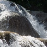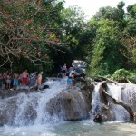 Nach einem ordentlichen Frühstück in einem der Selbstbedienungsrestaurants an Bord, kamen wir am nächsten Morgen in Montego Bay auf Jamaika an. Da wir zu viert waren, haben wir uns, ohne einen Ausflug auf dem Schiff zu buchen, auf eigene Faust aufgemacht. Unser Ziel, der Dunn’s River Wasserfall. Im Hafengebäude wurden wir auf der Suche nach einem Transport auch schon fündig. Für kleines Geld bekamen wir einen Mini-Bus samt Fahrer und englischsprachiger Reiseführerin. Während der Fahrt zum Wasserfall erklärt uns die Reiseführerin die Gegend, erzählt uns etwas über die Geschichte des Landes, so dass keine Langeweile aufkommen kann. Dort angekommen, ziehen wir uns unsere Wasserschuhe an und begeben uns mit anderern Touristen zum Ausgangspunkt. Zunächst beobachte ich das Treiben nur aus sicherer Entfernung, mit der Kamera bewaffnet und amüsiere mich, wie alle händchenhaltend durch das Wasser den Fall emporsteigen. An einer Zwischenstufe wage ich dann auch den “Sprung” ins kalte Wasser. Es ist angenehm kühl und macht Spaß. Der Ausflug hat sich gelohnt.