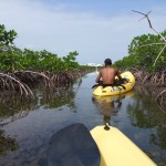 Der nächste Tag verspricht ein sportliches Programm. Kajakfahren auf Belize. Ein Boot bringt uns zunächst zu einer kleinen Privatinsel, wo wir dann mit den Kajaks in die Mangroven der Insel aufbrechen. Maurice, unserem einheimischen Guide wird es leider nicht leicht gemacht, uns die Geheimnisse der Landschaft zu zeigen. Die meisten Mitreisenden unterhalten sich leider sehr laut, der Begleiter vom Schiff fährt sein privates Rennen gegen sich selbst, so dass die meisten Vögel und Tiere, die man sonst ggf. hätte entdecken können, sich nicht blicken lassen. Trotzdem ist es eine schöne Tour, an deren Ende Maurice ein besonders dickes Trinkgeld bekommt. Hat er doch ohne zu murren, ab und an ertragen, unser Paddel in die Seite zu bekommen, weil wir versehentlich zu dicht aufgefahren sind, wenn er uns etwas zeigen wollte.