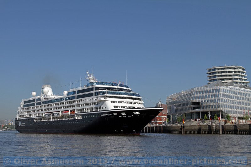 Im Rahmen des Erstanlaufs der Azamara Quest von Azamara Club Cruises am 23. Juli 2013 im Hamburger Hafen haben wir uns nach der Einlaufbegleitfahrt << Bildergalerie >> an Bord umgesehen. Das elegante Kreuzfahrtschiff wurde im Jahr 2000 für die Reederei Renaissance Cruises gebaut und war auch einige Jahre auf dem Deutschen Kreuzfahrtmarkt zu sehen. Nun unternimmt die Azamara Quest, wie sie nach der Übernahme von Azamara Club Cruises heißt, Kreuzfahrten zu sehr interessanten Destinationen auf der ganzen Welt. Aufgrund der geringen Schiffsgröße von nur 30.277 BRZ und einer Länge von 181 m erreicht die Azamara Quest auch Häfen, welche den großen Kreuzfahrtschiffen verwehrt bleiben.