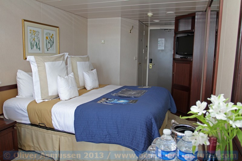 Am Tag unseres Besuches war die Azamara Quest bis auf eine Balkonkabine völlig ausgebucht. Wir haben es uns aber nicht nehmen lassen, einen Blick in diese Kabine zu werfen. Mit ca. 16m² sind die Kabinen ausreichend groß und bieten Flachbild-Fernseher, Kühlschrank mit Minibar, Schreibtisch, Haartrockner, regulierbare Klimaanlage sowie genügend Stauraum.