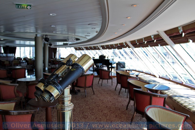 Auf Deck 9 genießt man von der „Looking Glass“ Lounge einen herrlichen Blick auf das Meer. Eine kleine Tanzfläche sowie eine Bar gehören ebenfalls dazu.