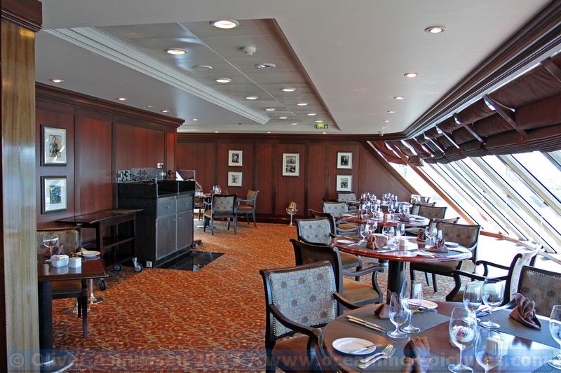 Die Decks 6-8 sind reine Kabinendecks. Das Heck auf Deck 9 gehört komplett dem Windows Café samt sehr schönem Außenbereich. Innen sitzt der Gast auf schönen Holzstühlen und außen auf Korbstühlen. Insgesamt setzt sich der elegante Charakter der Azamara Quest fort.