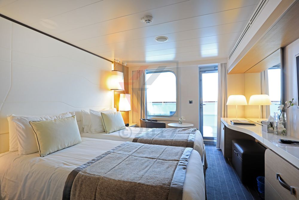 Im vorderen Drittel von Deck 4 liegen 35 Prestige-Balkonkabinen, welche den größten Anteil an Kabinen an Bord darstellen, insgesamt gibt es davon 92. Die Kabinengröße ist mit 18,5m ordentlich bemessen. Eine der Kabinen ist barrierefrei und somit für Rollstuhlfahrer geeignet.