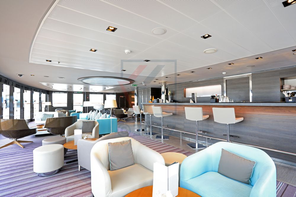 Am Heck auf Deck 3 stößt man auf die weitläufige und elegant ausgestattete Main Lounge, in der sich neben einer Tanzfläche auch eine Bar befindet. Das Ambiente ist französisch chic und schnörkellos, der Außenbereich überzeugt mit gemütlichen Loungemöbeln sowie einer wunderbaren Sicht auf das Fahrwasser. Sitzplätze in der Sonne sind hier keine vorhanden, diese gibt es in ausreichender Anzahl auf den oberen Decks.