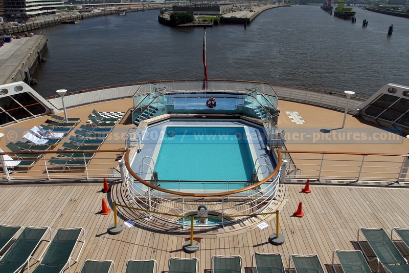 Wer möchte, der spielt eine Partie Shuffleboard oder nutzt einen der insgesamt vier Außenpools. Selbst bei Nutzung aller Deckstühle bieten die Außendecks ein unglaubliches Platzgefühl. Man könnte sich beinahe fragen, wofür braucht ein Schiff so viel Platz an Deck aber letztendlich rundet diese Tatsache lediglich das stimmige Gesamtbild der Queen Mary 2 ab. Platz, Stil, Großzügigkeit sind die Hauptattribute dieses letzten Transatlantikliners unserer Zeit.