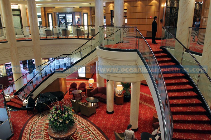 Ein Casino gehört beinahe schon zum Standard moderner Kreuzfahrtschiffe und auch auf der Queen Mary 2 darf es natürlich seinen Platz. Beinahe genau mittschiffs befindet sich die Grand Lobby mit Rezeption, Tour Office und diversen Geschäften namhafter Marken wie zum Beispiel dem Juwelier H. Stern. Die Grand Lobby erinnert sehr an historische Londoner oder New Yorker Grand Hotels, besticht jedoch weniger durch Größe und Höhe sondern durch Eleganz und Stil. Wer auf der Queen Mary 2 ein Atrium erwartet, welches sich durch die gesamte Schiffshöhe erstreckt, der wird dieses nicht finden. Die Grand Lobby wirkt dennoch großzügig und überzeugt mit viel Platz, live Musik und britisch- elegantem Ambiente.